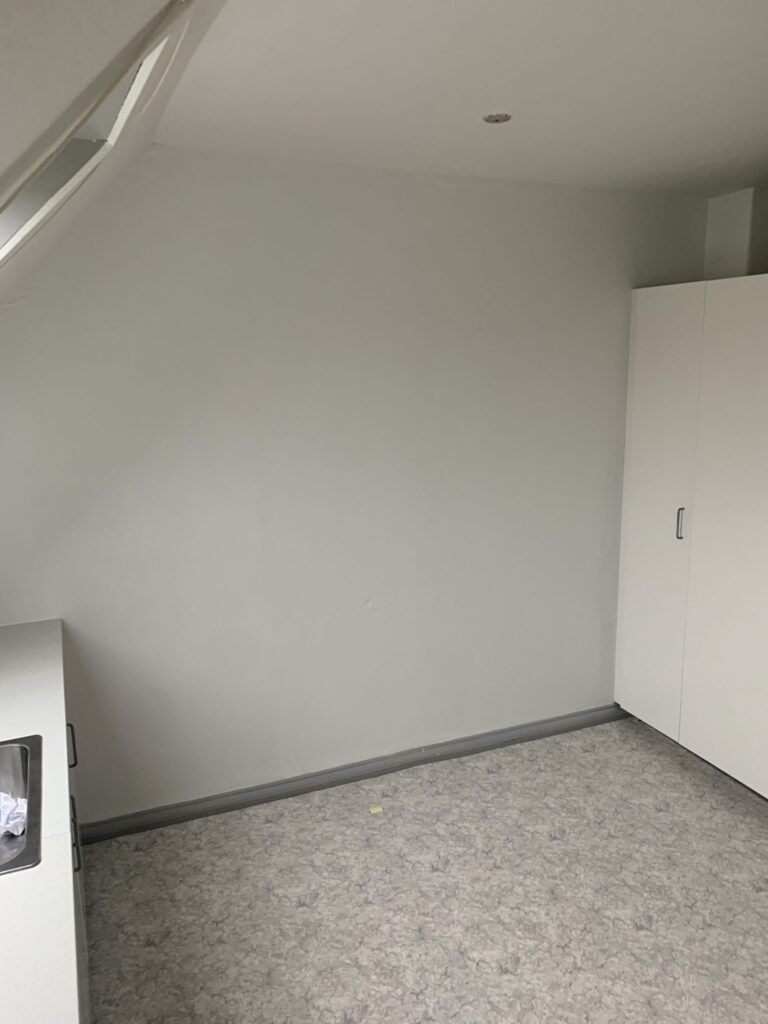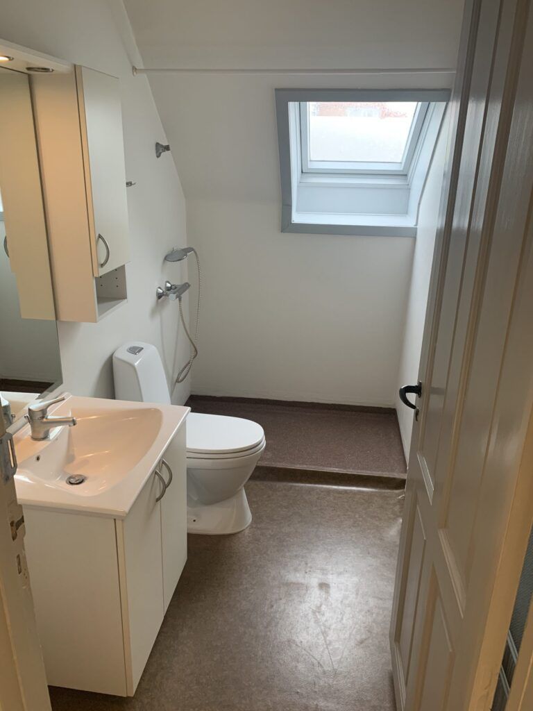 Boligen indeholder et rummeligt soveværelse og en stor, lys stue – begge med pæne trægulve og en rigtig fin størrelse, der giver gode indretningsmuligheder. I alle rum er der skråvægge ved vinduerne, som tilfører lejligheden charme og karakter uden at være generende. Stuen har vipbare tagvinduer, som giver et ekstra flot lysindfald og skaber en lys og indbydende atmosfære.