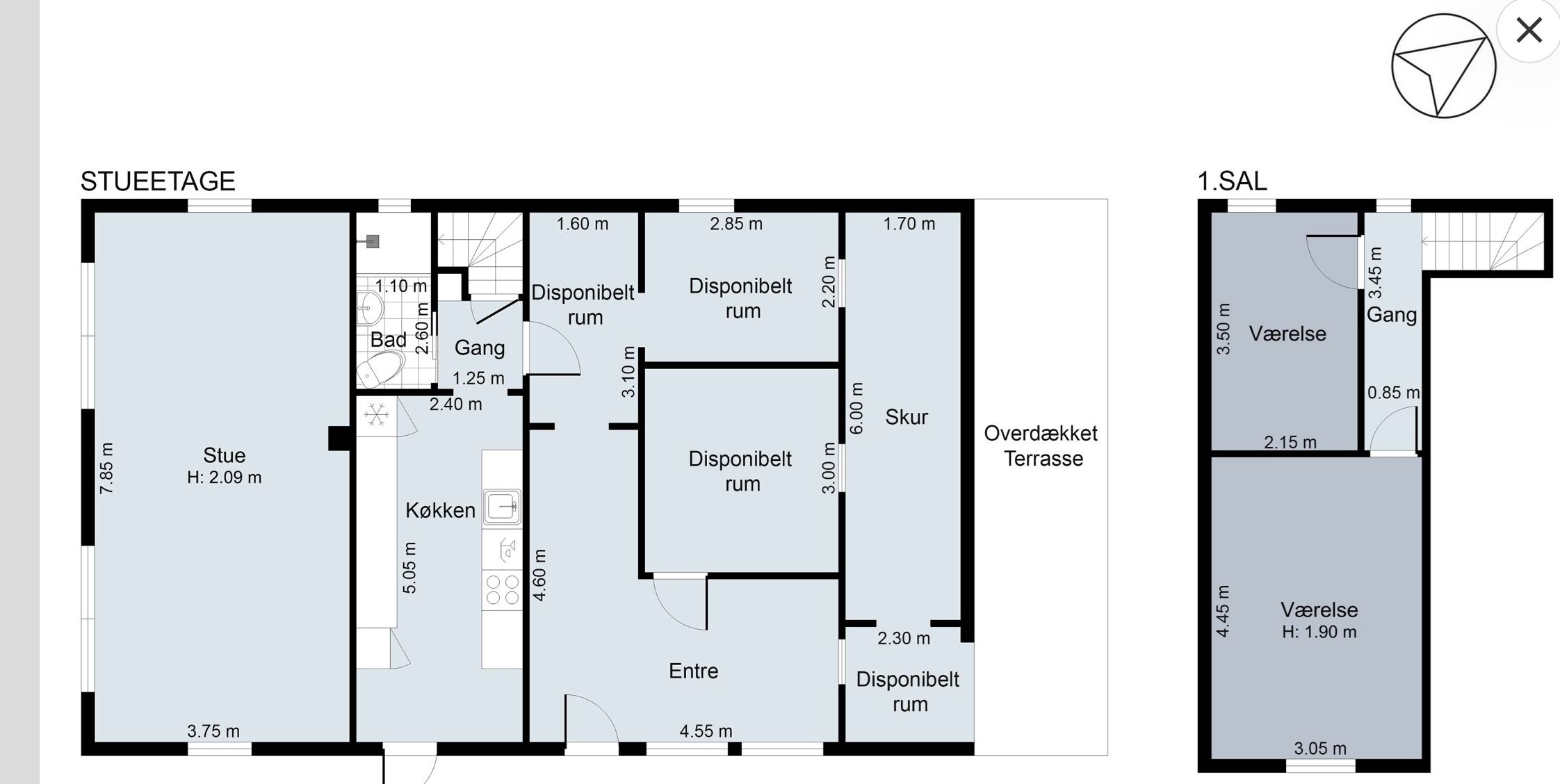 1.sal, Gang og 2 værelser.