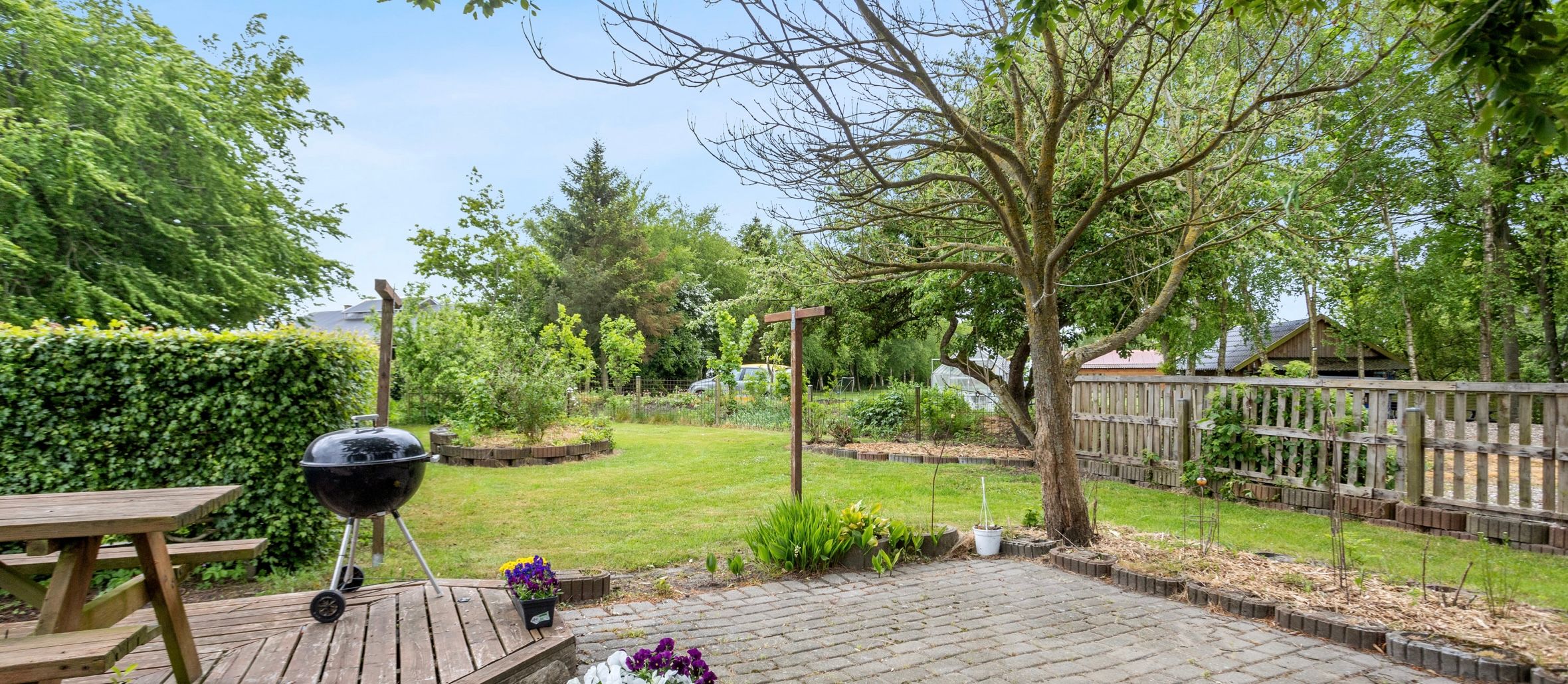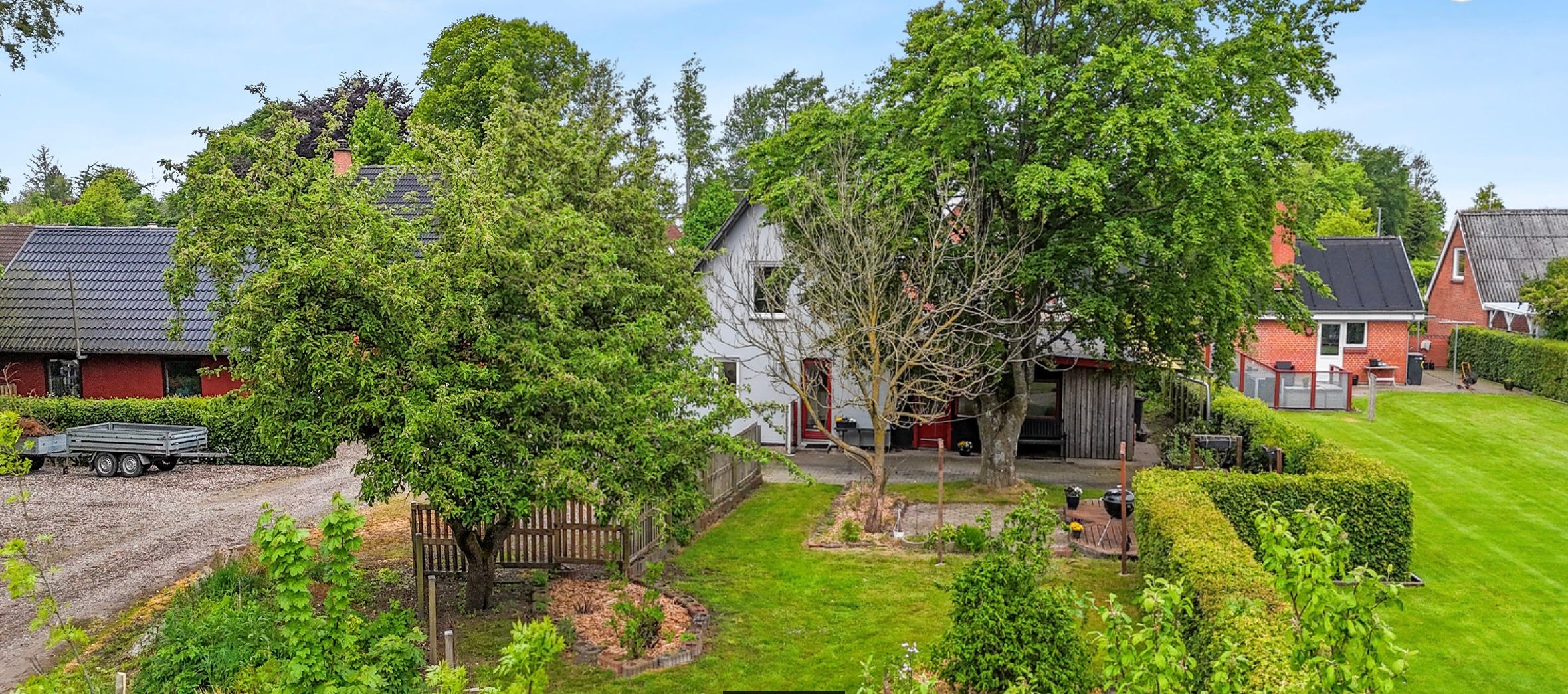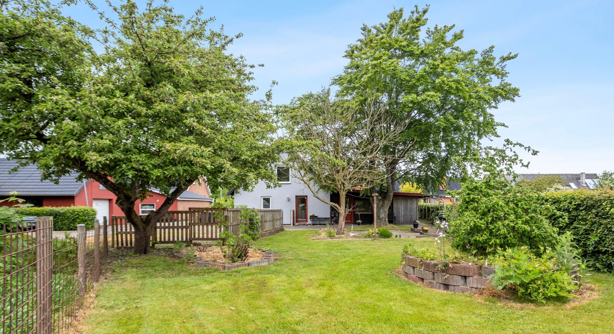Huset ligger tilbagetrukket fra Houvej, så der er ingen støjgener.