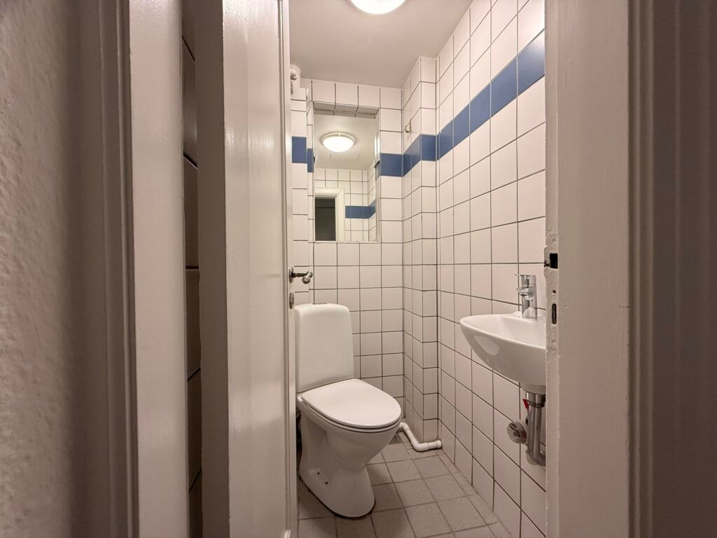 På øverste plan er der et mindre gangareal med adgang til et større badeværelse med brusekabine og vaskemaskine. Her finder du også to gode værelser med skråvægge, loft til kip og pæne parketgulve, som giver rummene en hyggelig og indbydende stemning.