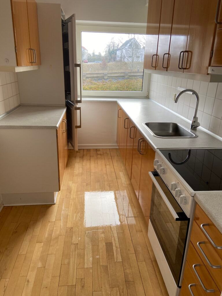 Køkkenet har en god størrelse med rigeligt bord- og skabsplads. Badeværelset er ældre, men pænt og velholdt med bruseniche.