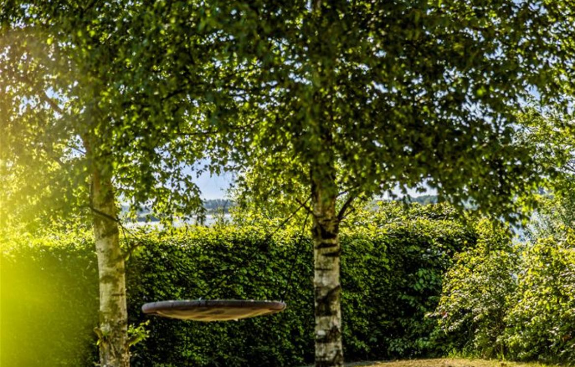 På grunden er der en stor have med flere træer, som indhyler haven og indbyder til fred og ro.