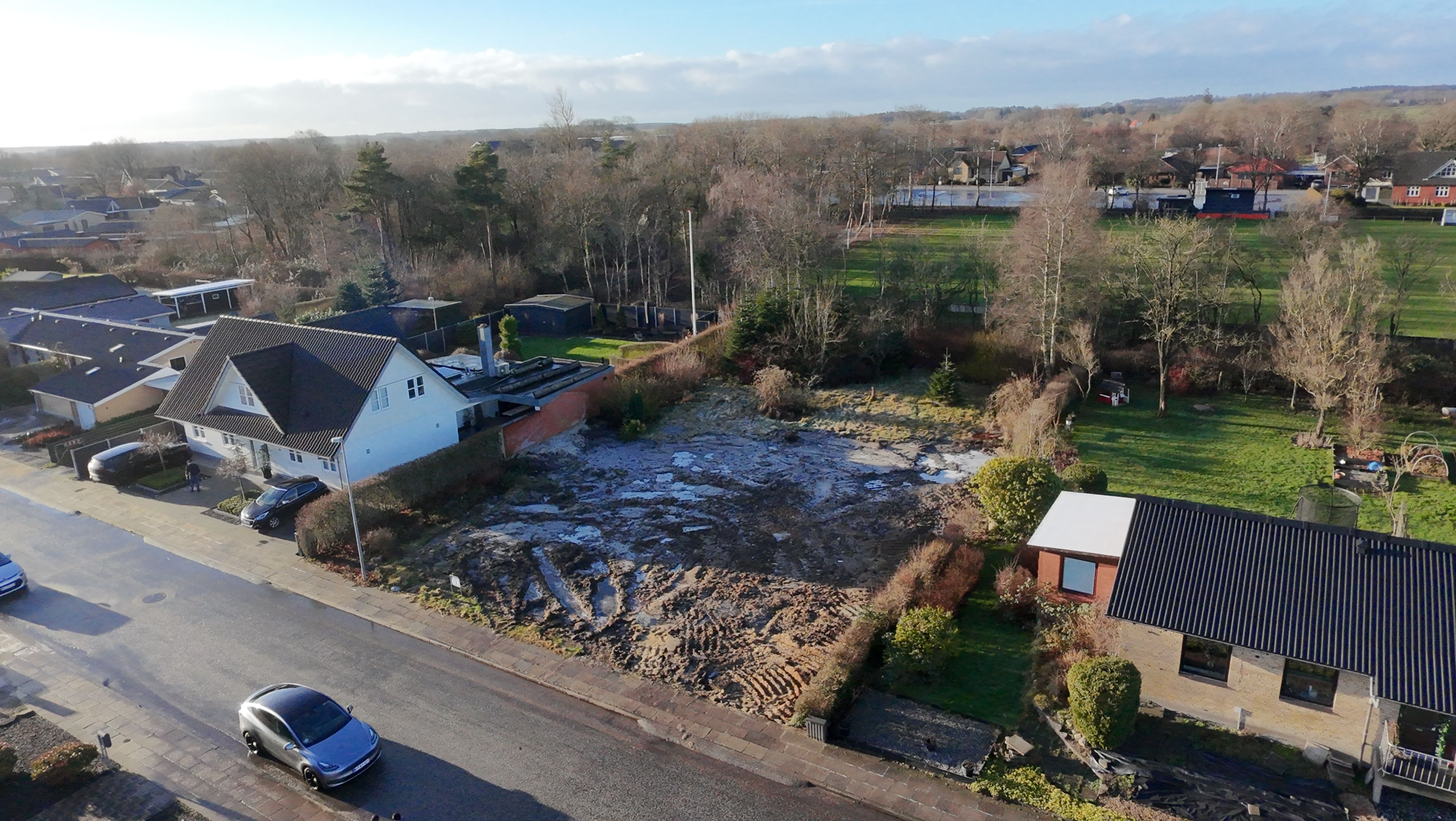 ✨ Grunden er klar til byggeri, og stikledninger til fjernvarme, el og vand er allerede ført frem.