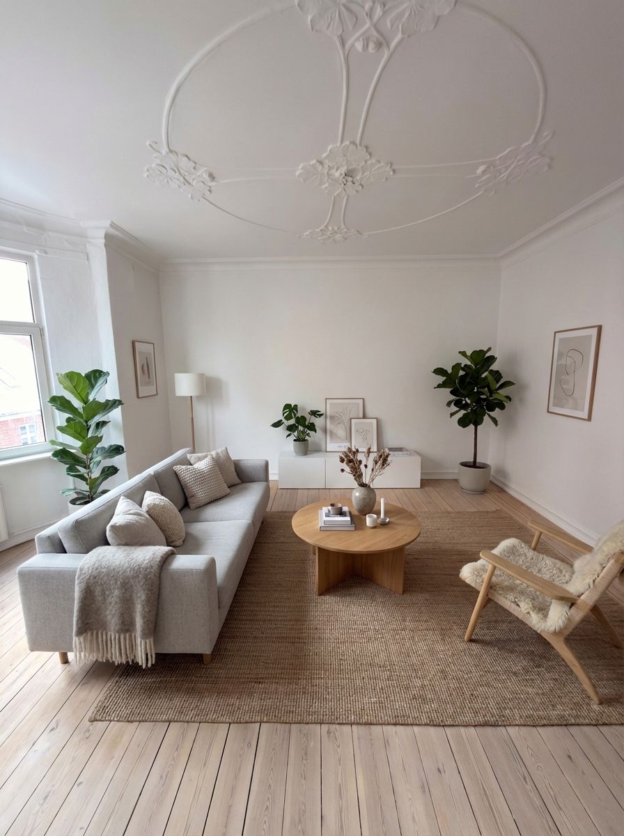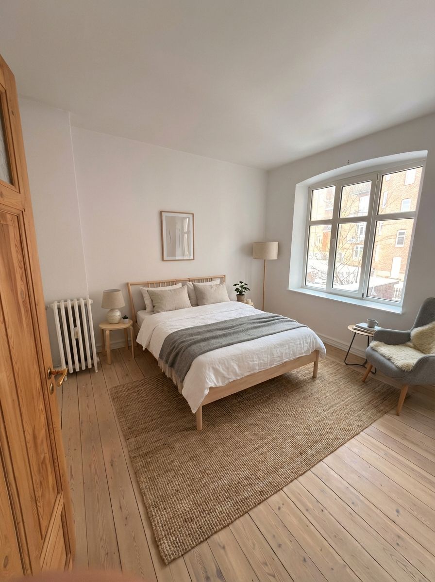 Velkommen til en veldisponeret lejlighed, der kombinerer klassisk charme med en rolig, moderne indretning.