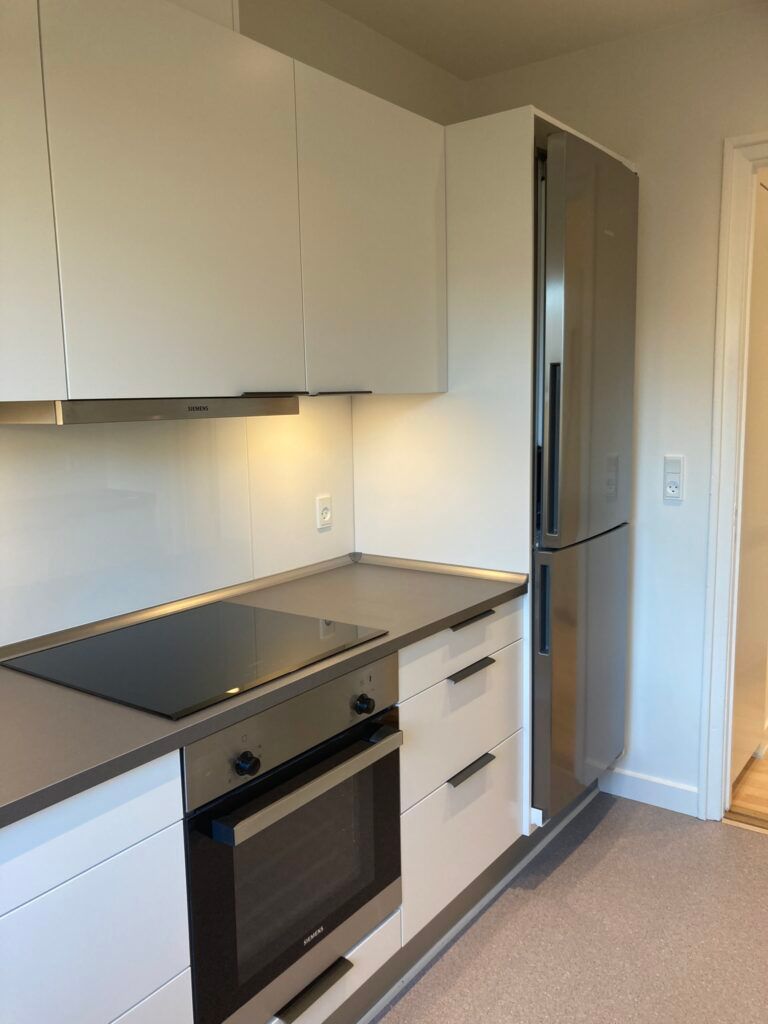 Boligen byder på et flot og nyere køkken med opvaskemaskine og øvrige hårde hvidevarer i rustfrit stål. Der er god skabs- og bordplads samt et større vindue, der sikrer et dejligt lysindfald.