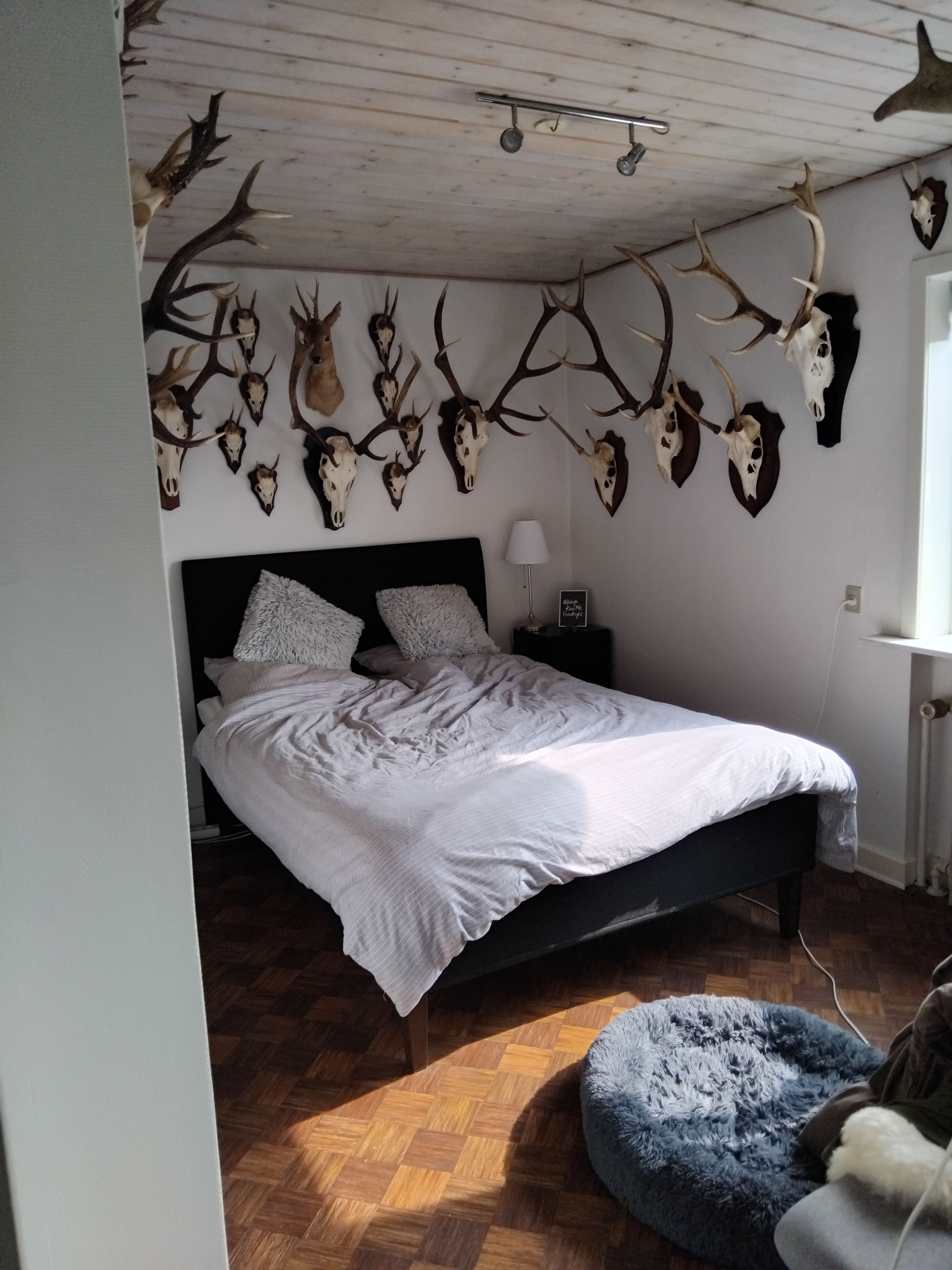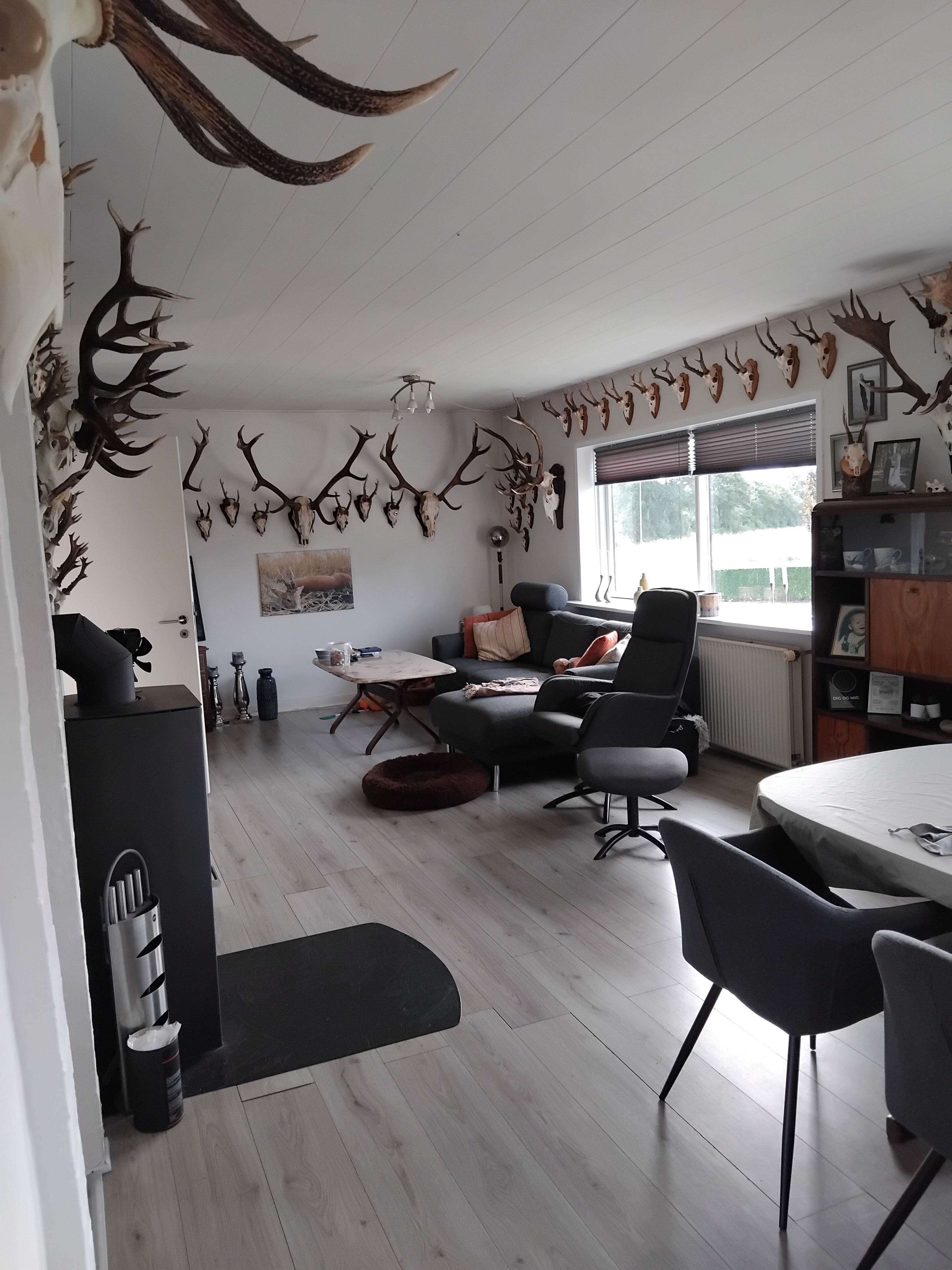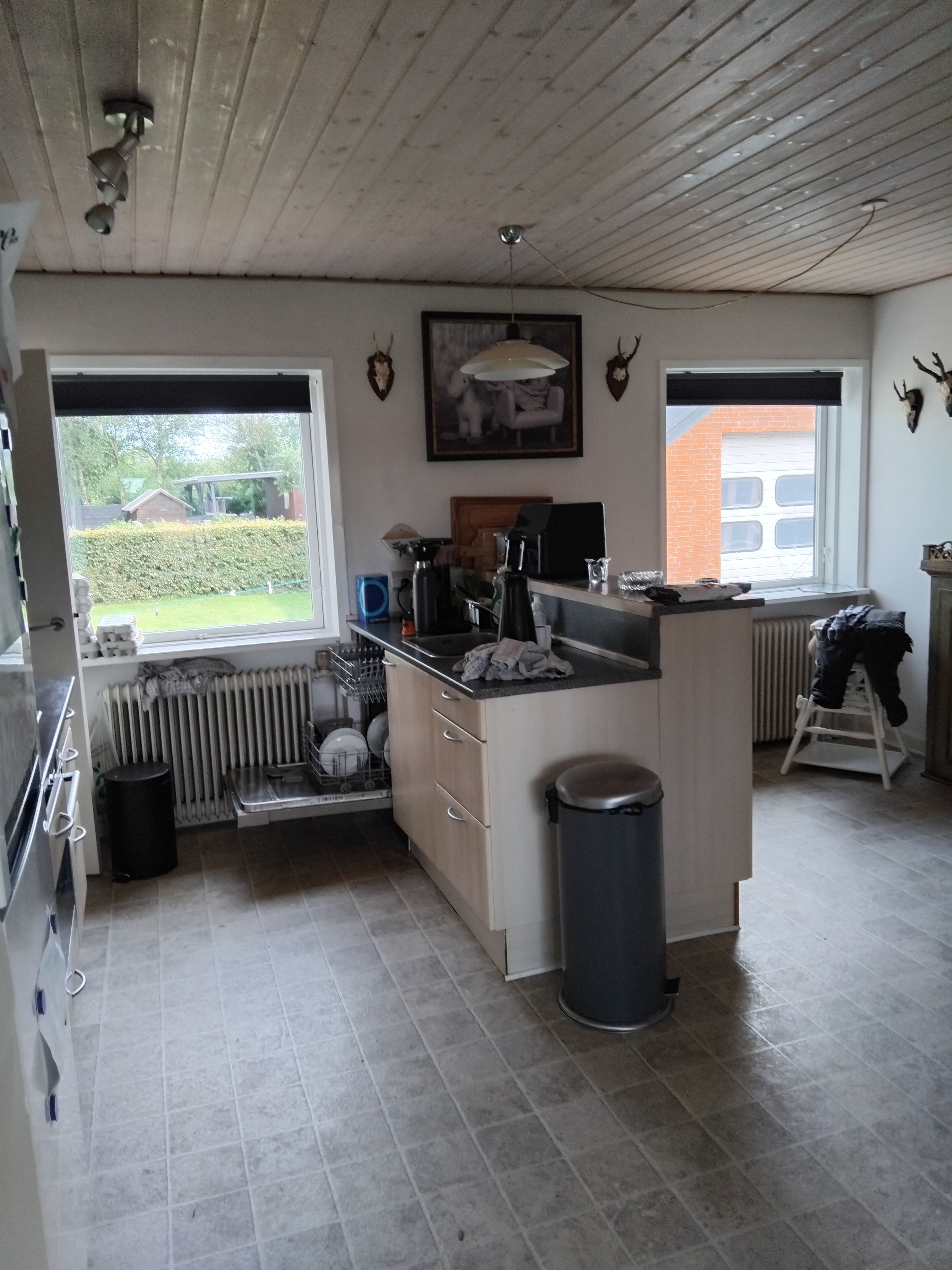 80 kvm hus + Kælder opvarmes med gas og brændeovn.