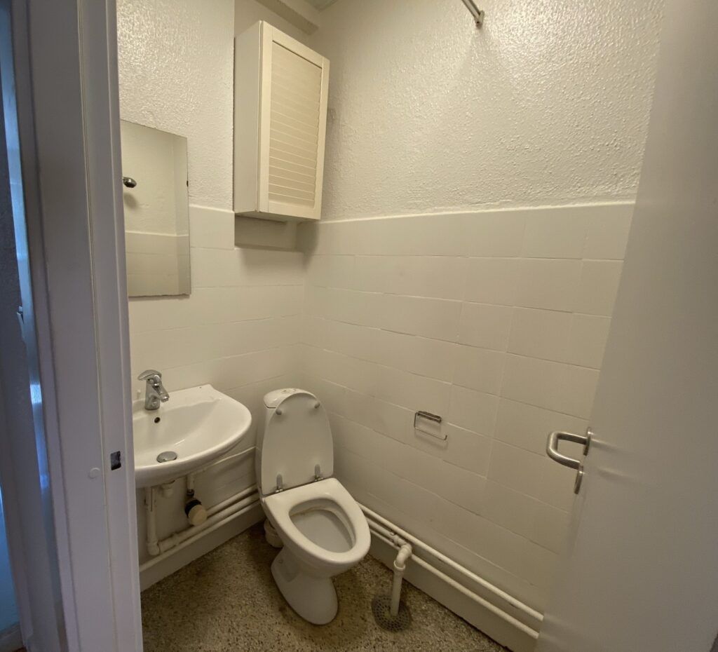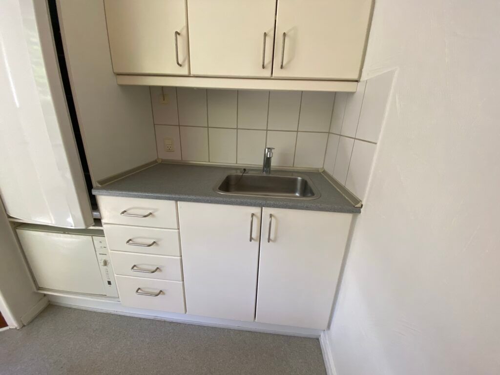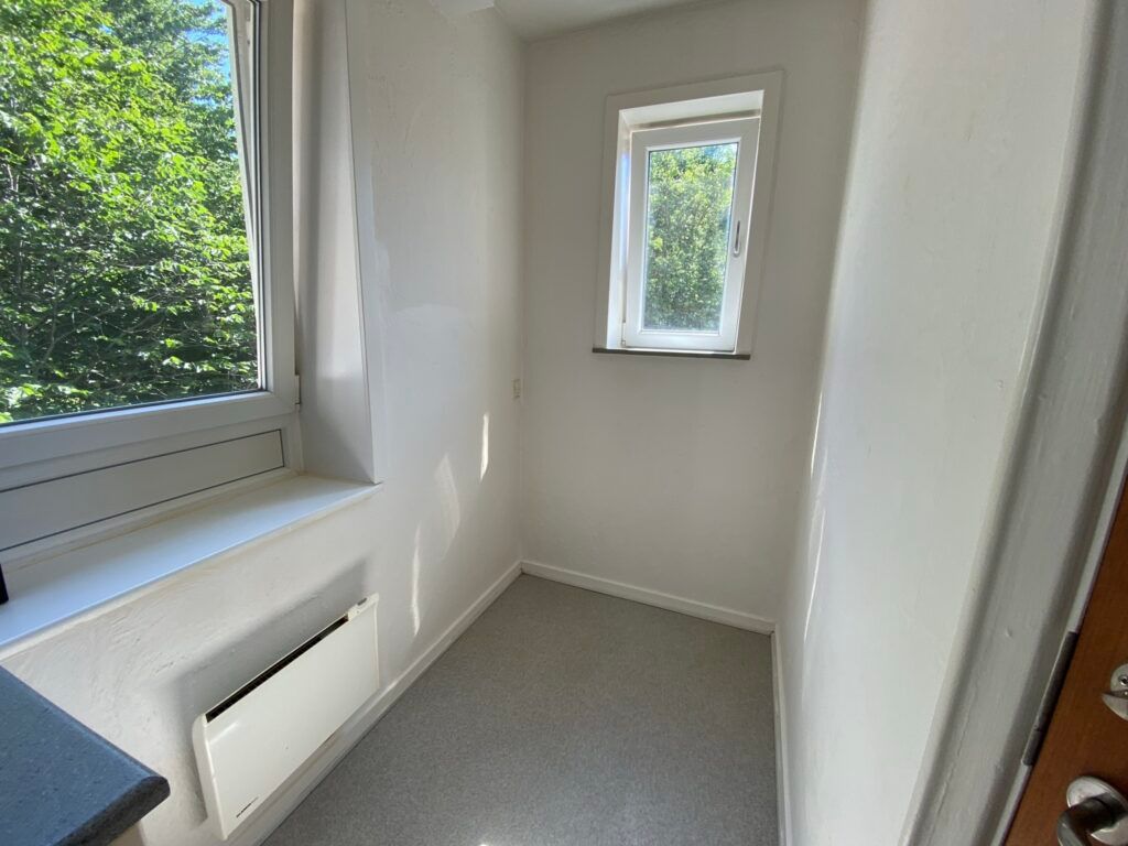 Boligen indeholder et ældre, men pænt køkken med mulighed for et lille spiseområde. Badeværelset er enkelt og funktionelt med bruseområde.