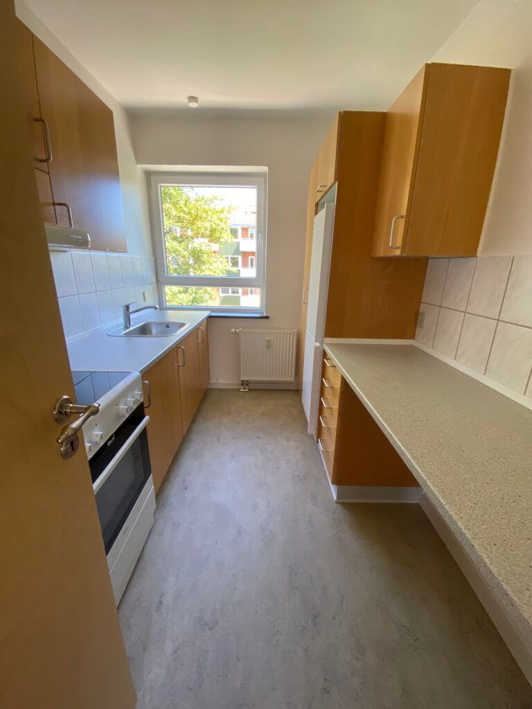 Køkkenet er klassisk og pænt med god bord- og skabsplads. Der er etableret en bordplade med plads under, som giver mulighed for en siddeplads – ideelt til morgenkaffe eller hurtige måltider.
