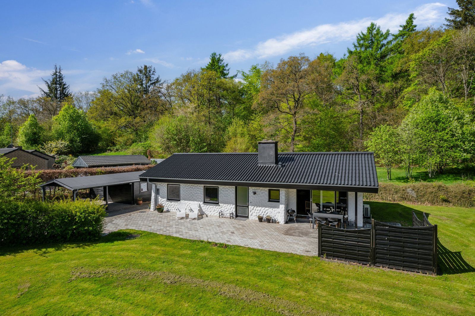 Carport og brændeskur nyt tag. Ny pejseindsats, nye egetræsgulve, terrasse. Stor frodig, helt ugeneret have. Vågn op fuglesang