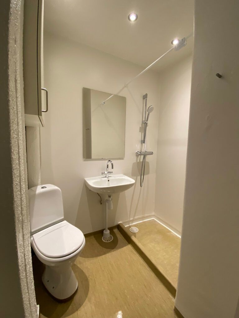 Lejligheden byder på et nyere og opdateret køkken med hårde hvidevarer i rustfrit stål samt indbyggede spots i loftet, som giver både funktionalitet og et behageligt lys. Badeværelset er ældre, men pænt og funktionelt med bruseniche.
