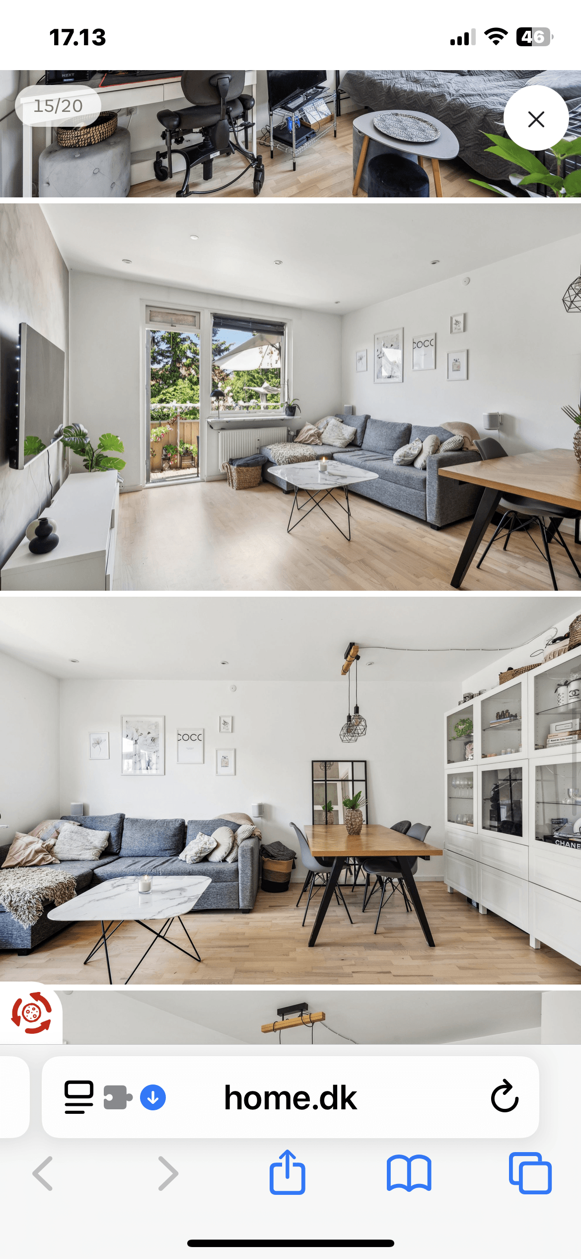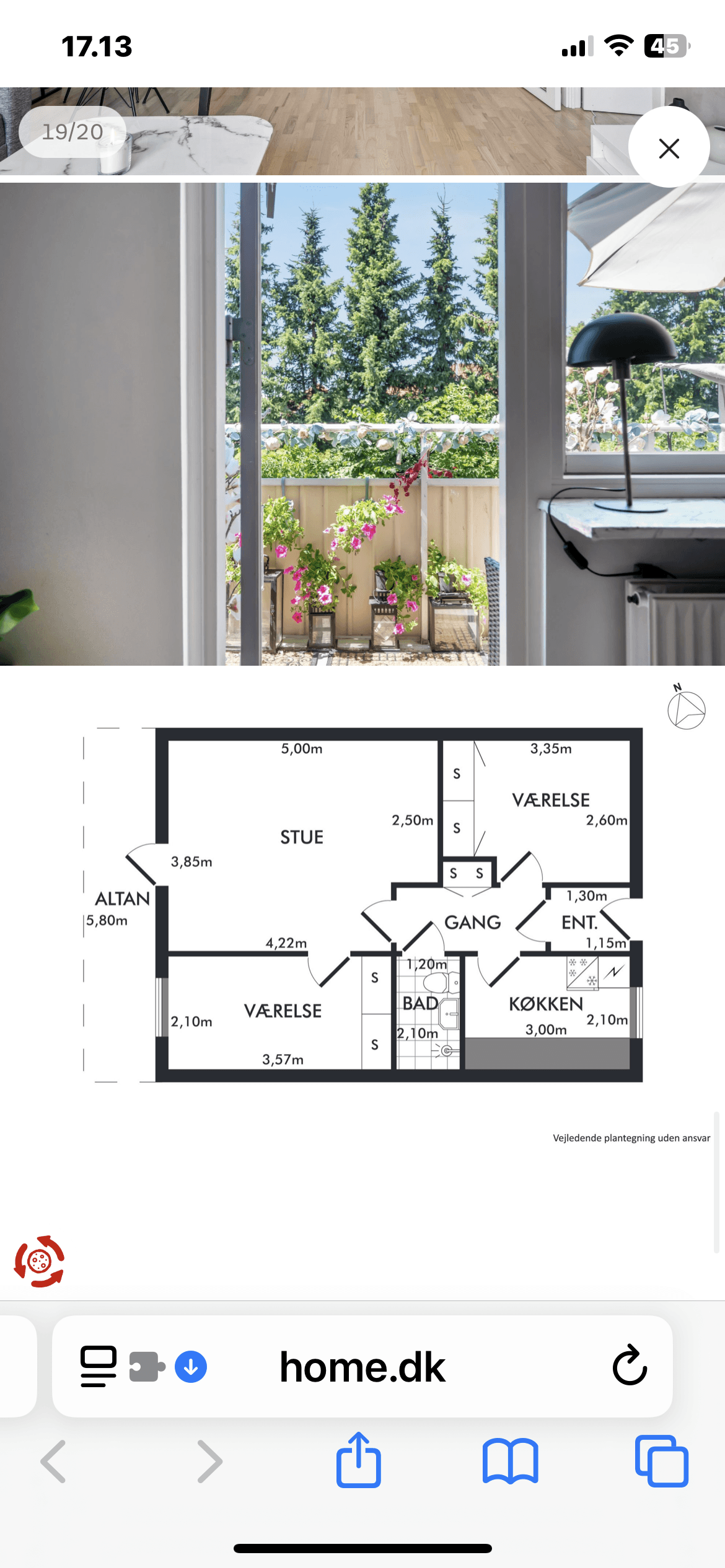 Planløsningen: Entré med adgang til en mellemgang, der giver luft og plads mellem lejlighedens øvrige rum. Dernæst et flot køkken med skønt kig til solopgang fra øst og udsigt over et grønt gårdmiljø. I får også et badeværelse i god størrelse, som har bruseniche og stilrent inventar, to gode værelser og en dejlig stue med integrerede loftspots og direkte udgang til altanen.